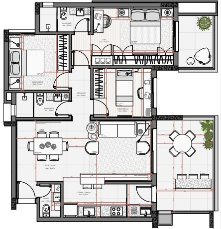 Excelente apartamento de alto padrão com 3 dormitórios, sendo uma suíte, banheiro social, sala de estar, jantar e cozinha integradas, lavabo, ampla sacada gourmet com churrasqueira, área de serviço com acesso a sacada e box duplo de garagem. Espera para água quente, e ar condicionado e gás central. Prédio com elevadores, hall de entrada mobiliado com pé direito duplo, salão de festas, academia, brinquedoteca, bicicletário, jardim e guarita.