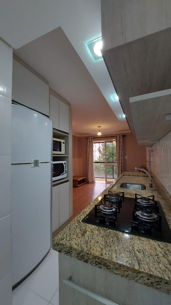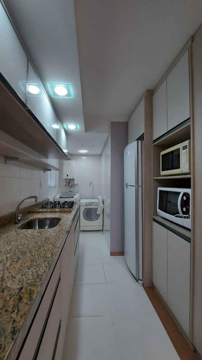 Excelente apartamento mobiliado, com dois dormitórios, banheiro social, sala de estar e jantar integradas, sacada fechada e uma vaga de garagem. Prédio com salão de festas com churrasqueira, boiler para água quente e elevador.