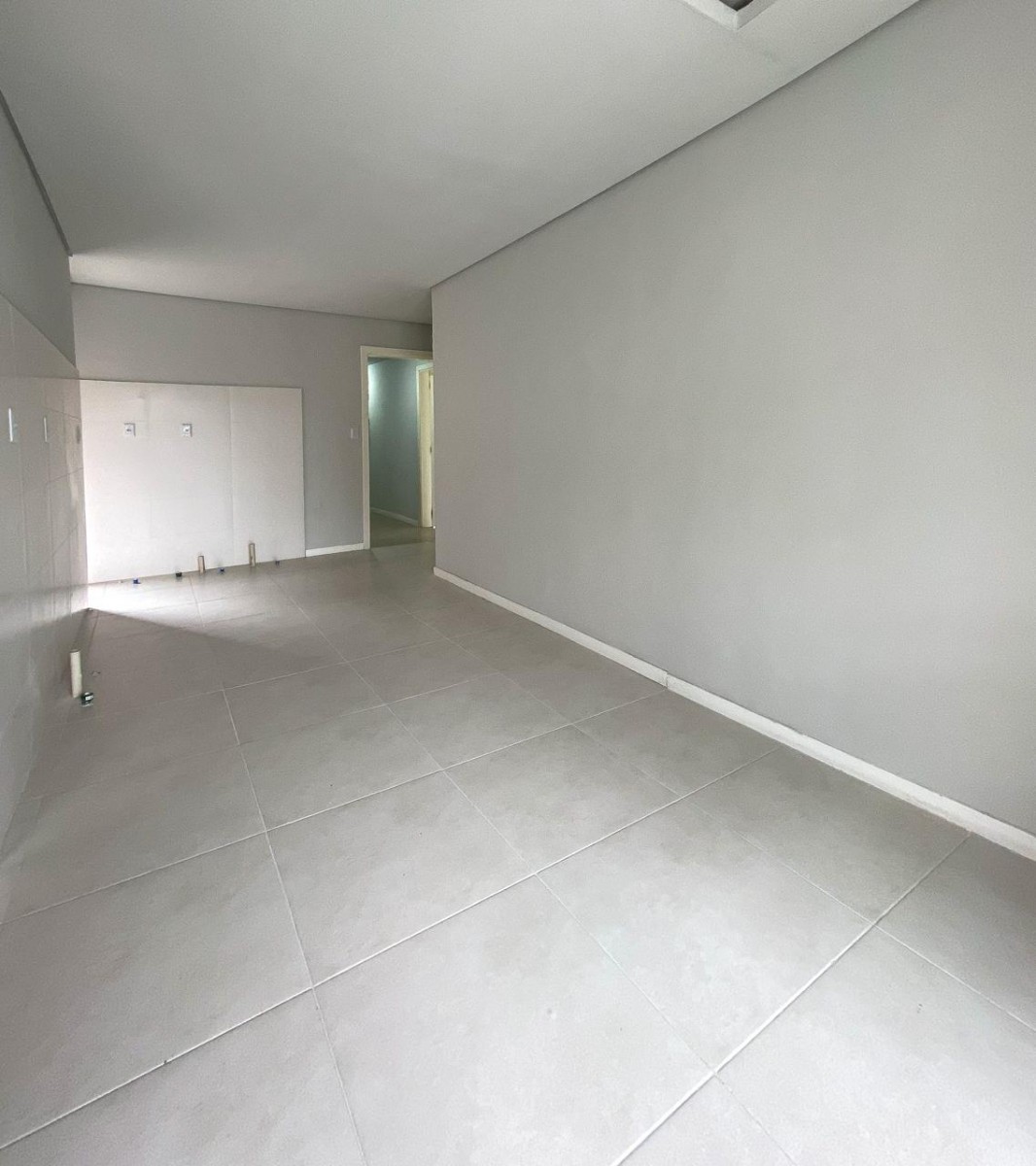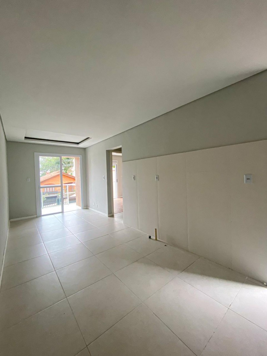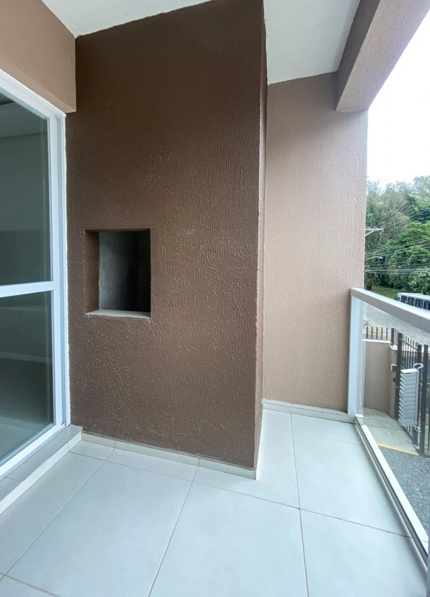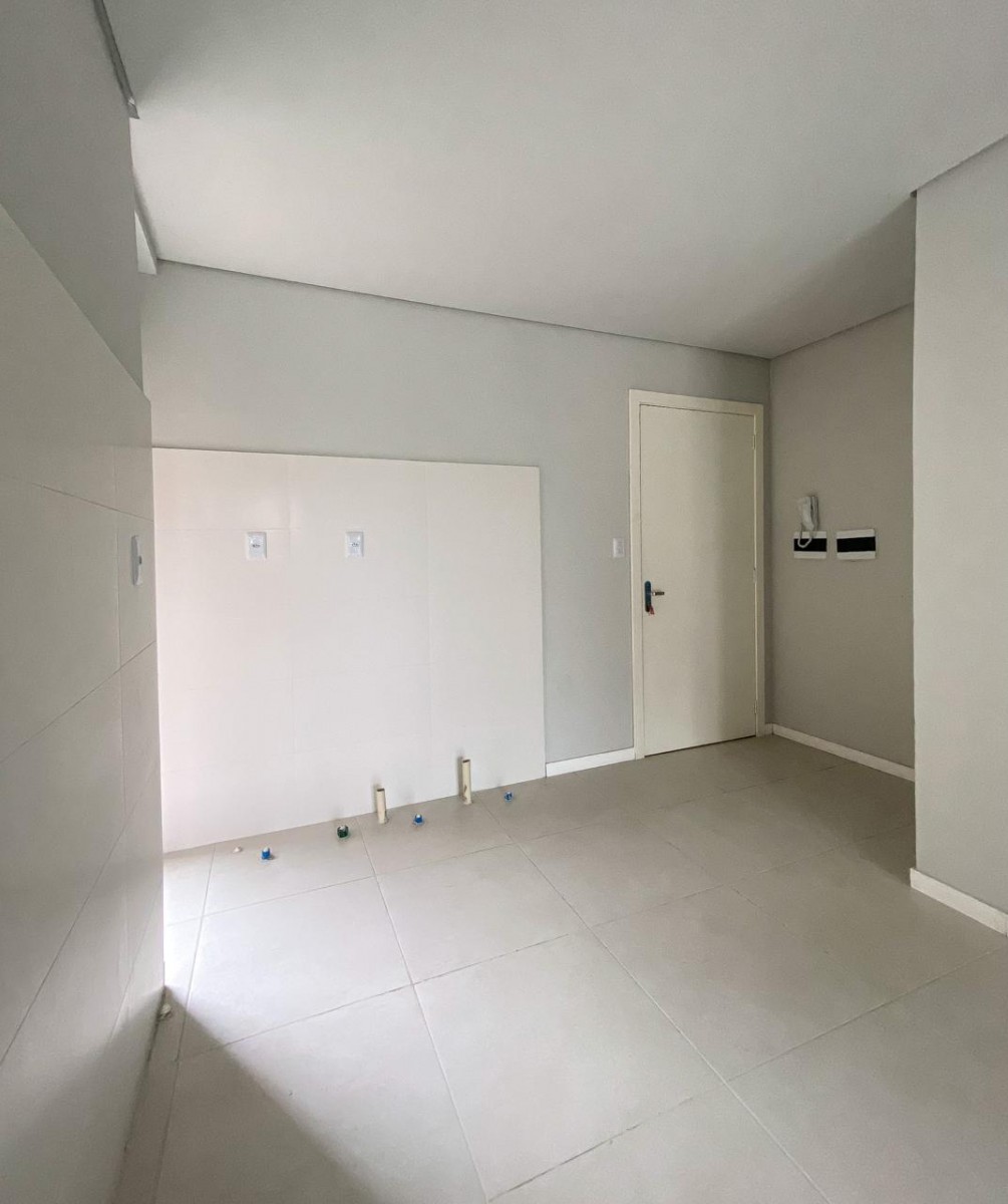 Apartamento com dois dormitórios, banheiro social, sala de estar e jantar integradas, sacada com churrasqueira, cozinha, área de serviço terraço e uma vaga de garagem.