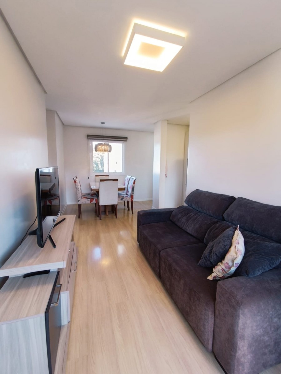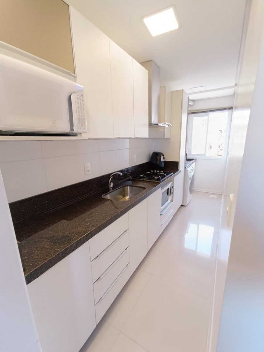 Excelente apartamento semi mobiliado com dois dormitórios, sendo uma suíte, banheiro social, sala de estar e jantar integradas, sacada fechada com churrasqueira, cozinha, área de serviço separada e uma vaga de garagem.