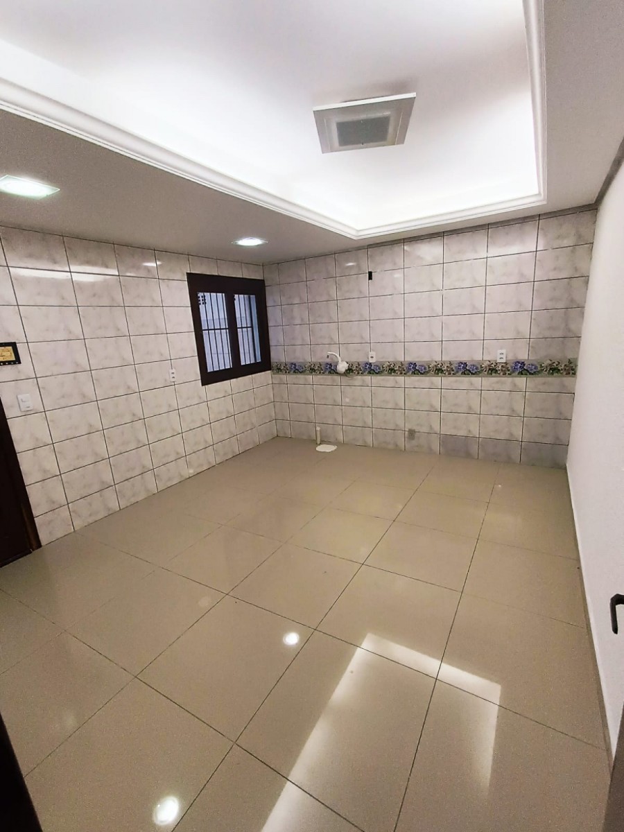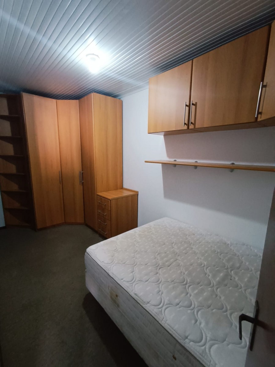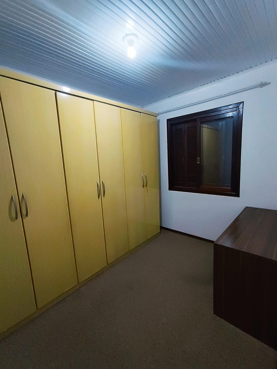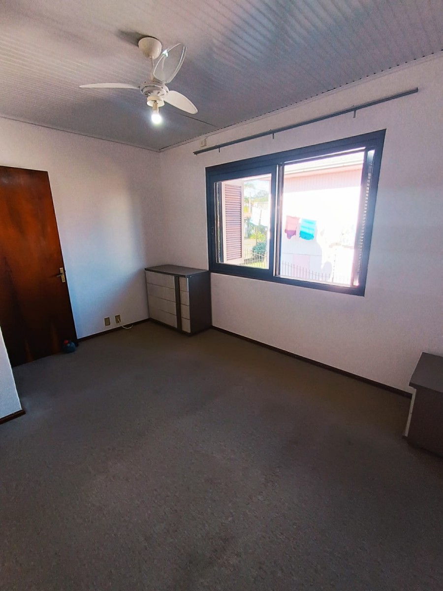 Sobrado duplex com três dormitórios, banheiro social, sala de estar e jantar integradas, cozinha, área de serviço com churrasqueira e garagem coberta para dois carros.
