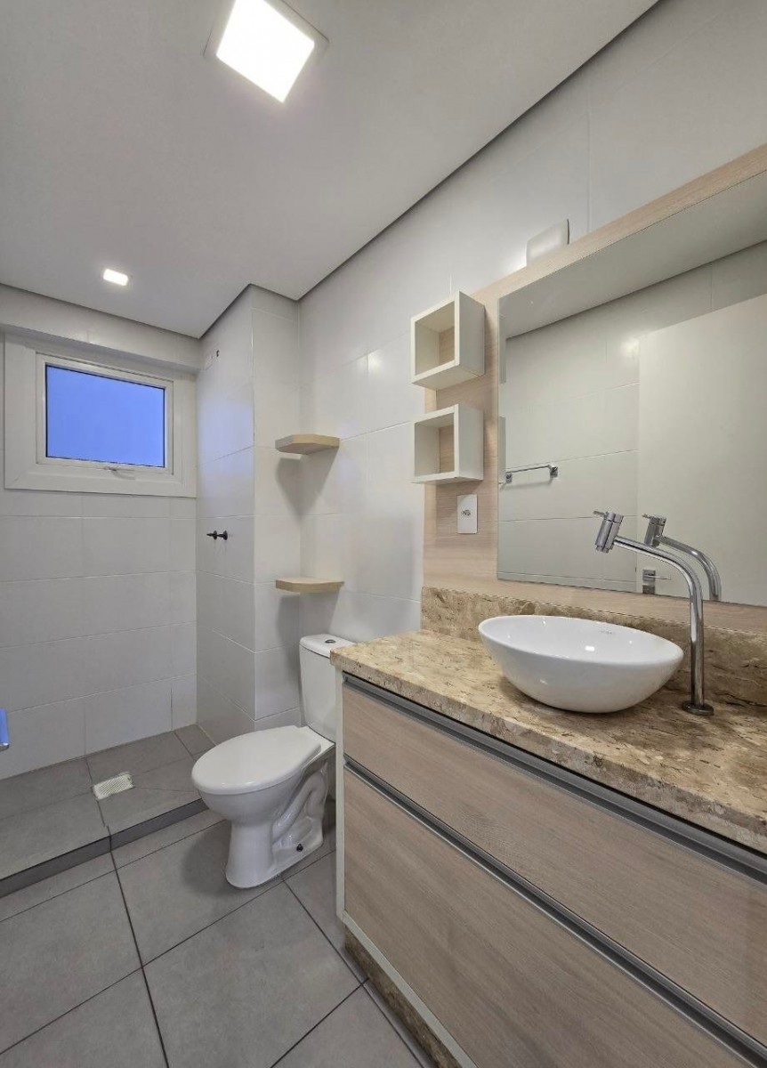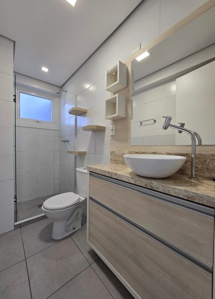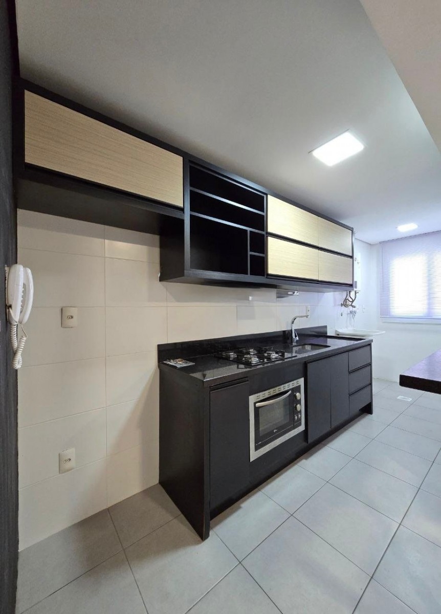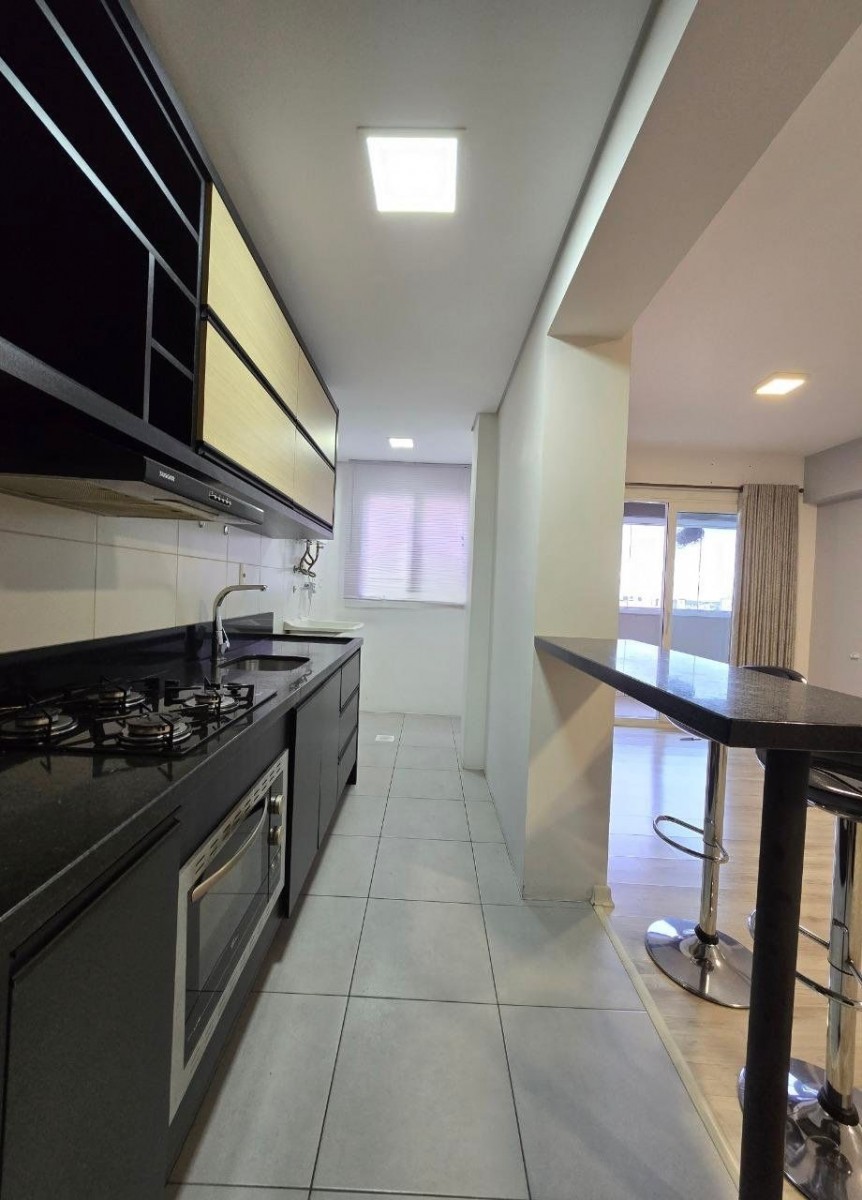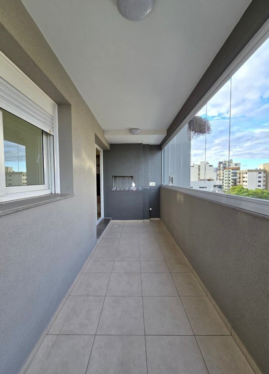 Excelente apartamento semi mobiliado com três dormitórios sendo uma suíte, banheiro social, sala de estar e jantar integradas, cozinha integrada ao living, sacada fechada com churrasqueira, área de serviço e duas vagas de garagem. Água quente; Gás central; ?Espera para split;