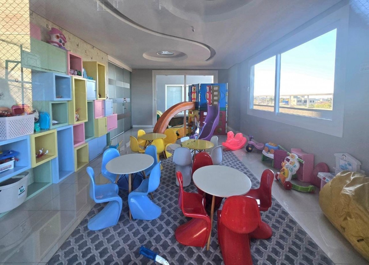 Prédio com 2 elevadores, hall de entrada decorado, salão de festas, espaço fitness, espaço gourmet, espaço kids, piscina, área de lazer externa.